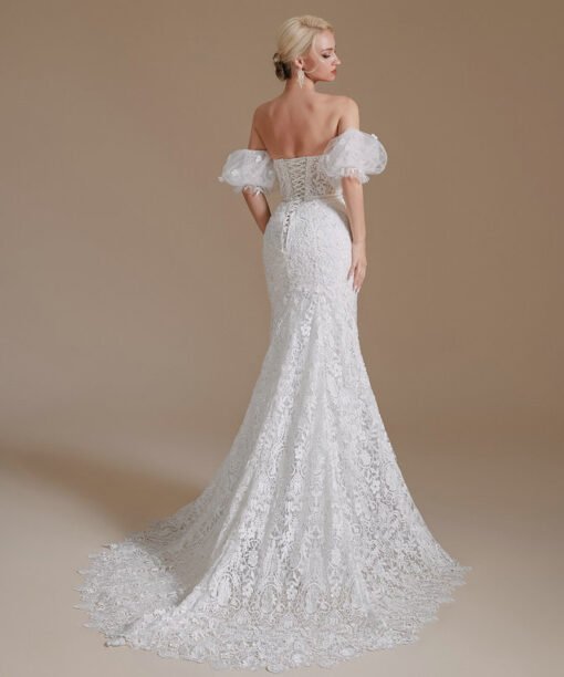 Strapless mermaid wedding dress sweetheart lace removable short sleeves sexy bridal gown with train