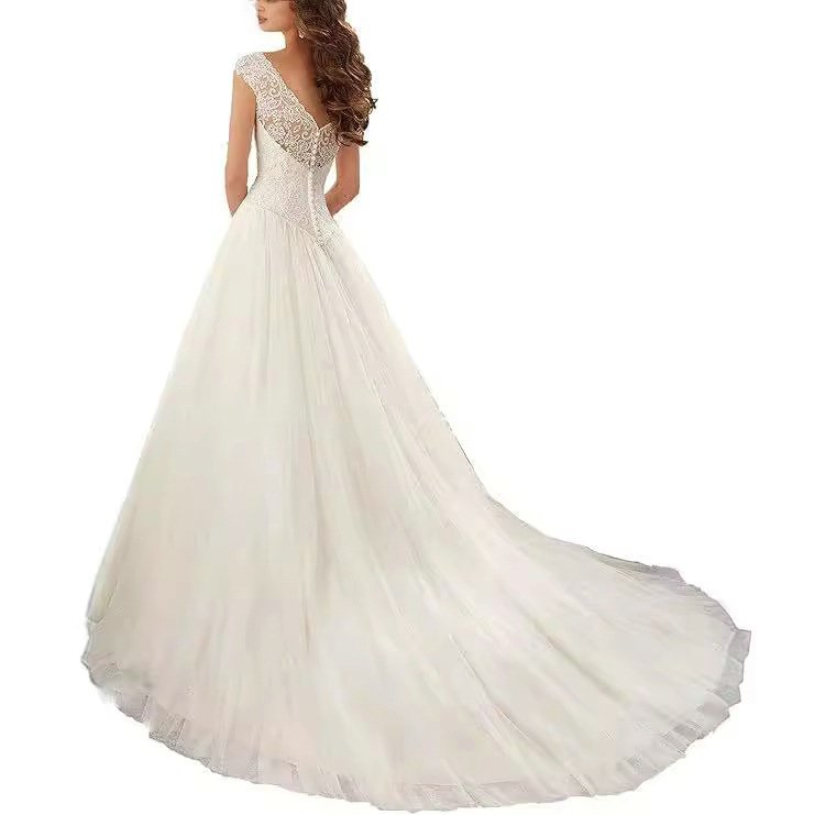 Tulle a line wedding dress luxury off the shoulder cap sleeve lace tulle plus size summer bridal dress two colors available for sale.