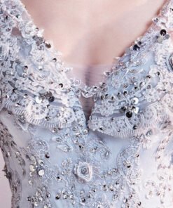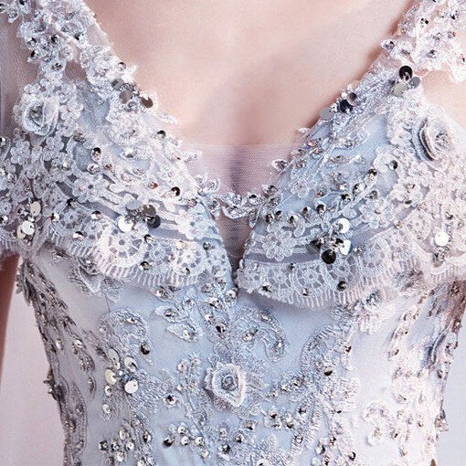 V Neck Mermaid Grey Evening Formal Dress With Train New Arrival