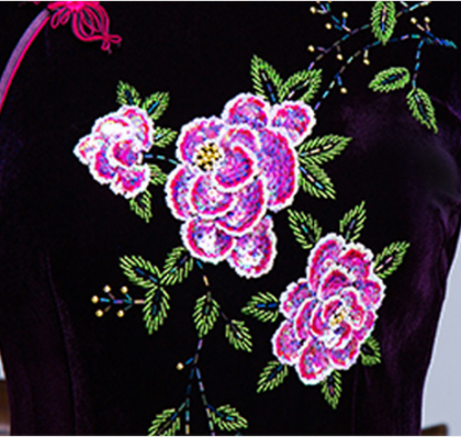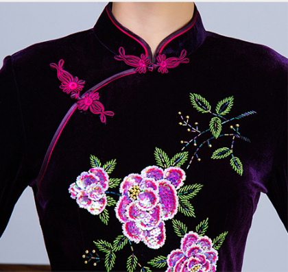 Vintage Sexy Cheongsam Dress for Women, High quality Pleuche fabric. Hand-made Beaded and Embroidery. Season Spring,Autumn and Winter.