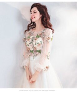 Wedding Dress With Flowers A Line Long Sleeves Prom Dress
