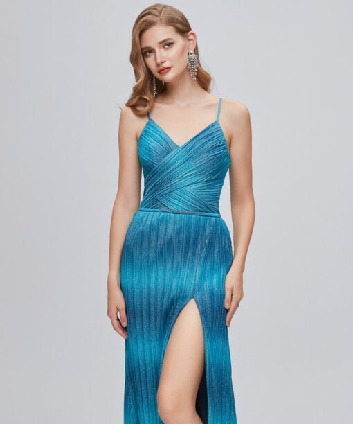 Wedding guest dresses 2022 spaghetti strap mermaid sleeveless split sexy formal evening dress prom dress wholesale online.