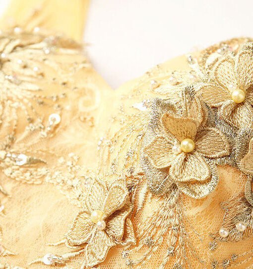 Yellow Prom Dress V Neck Sleeveless Birthday Dress